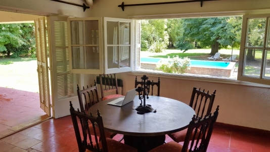 La propiedad esta compuesta por una cocina totalmente equipada, amplio living comedor, 4/5 habitaciones, 3 baños, uno exterior para uso de la pileta. Importante galería con vistas al jardín.