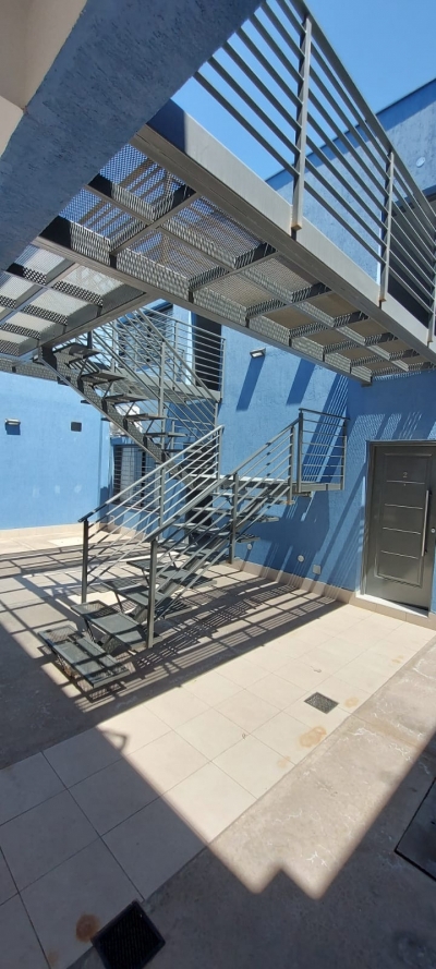 Dos departamentos de dos dormitorios con placares, uno de ellos con salida a un pequeño patio. Cuentan con living comedor con cocina y sector de lavandería. Un baño zonificado