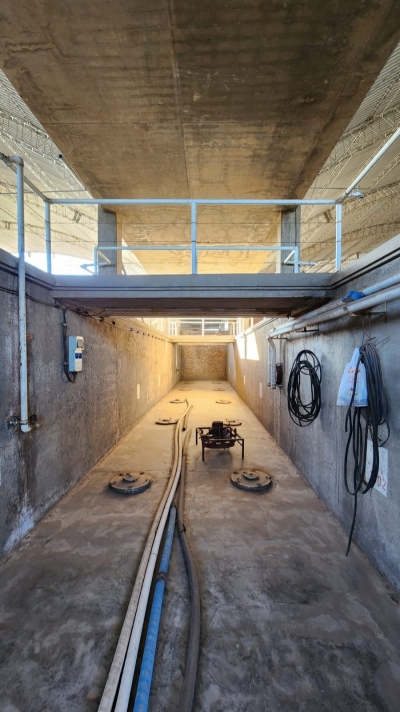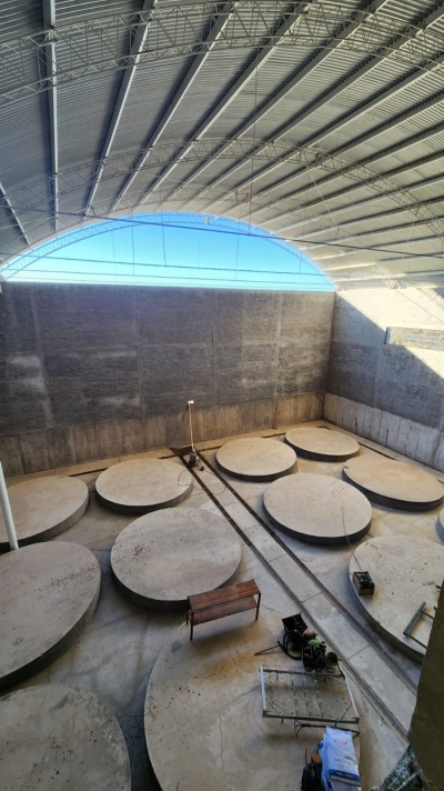 -69 piletas del hormigón armado rectangulares con una capacidad de 42.451 hectolitros, revestidas con epoxi con tapas y bocas de acero inoxidable