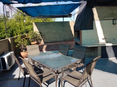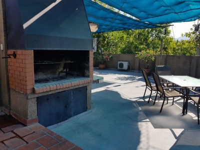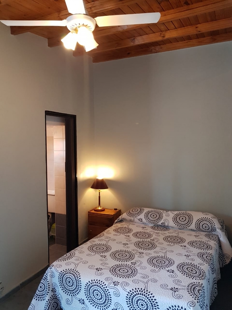 TERRAZA: PARRILLA Y UNA HABITACION EN SUITE CON VENTILADOR DE TECHO.